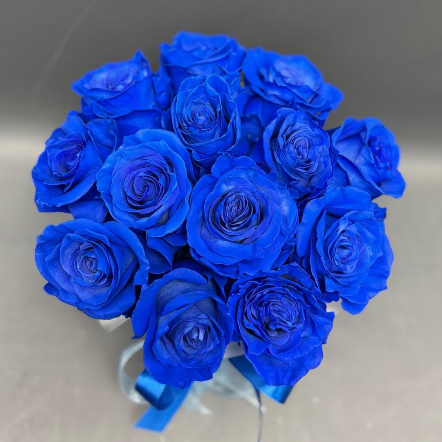 13 синих роз в шляпной коробке в Туапсе