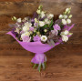 Изысканное сочетание свежесрезанных роз и гвоздик, эустом и альстромерий, задекорированных насыщенно зелеными листиками эвкалипта и папоротника,  по достоинству оценит даже самая взыскательная и утонченная натура. Вкрапления лимониума и стильная, оригинальная упаковка делают букет «Прованс» еще более элегантным и небанальным, что гарантированно придется по вкусу каждой представительнице прекрасного пола.